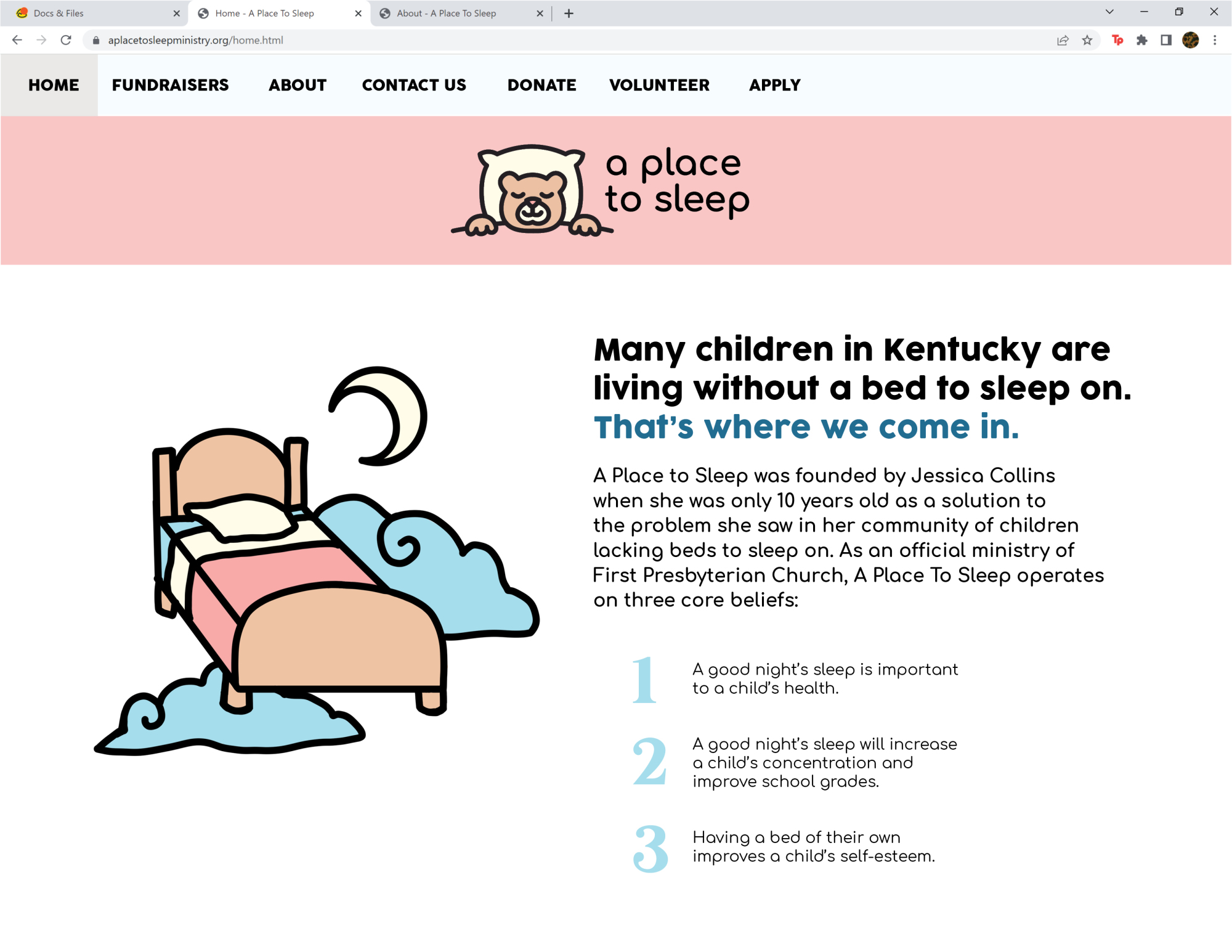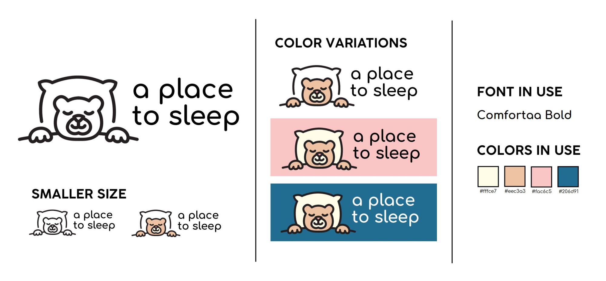 Brand refresh for the charity A Place to Sleep. This work was created as part of the Design it Forward 2022 student design competition, in which students compete to create new branding materials for a nonprofit organization. Won 2nd place overall.