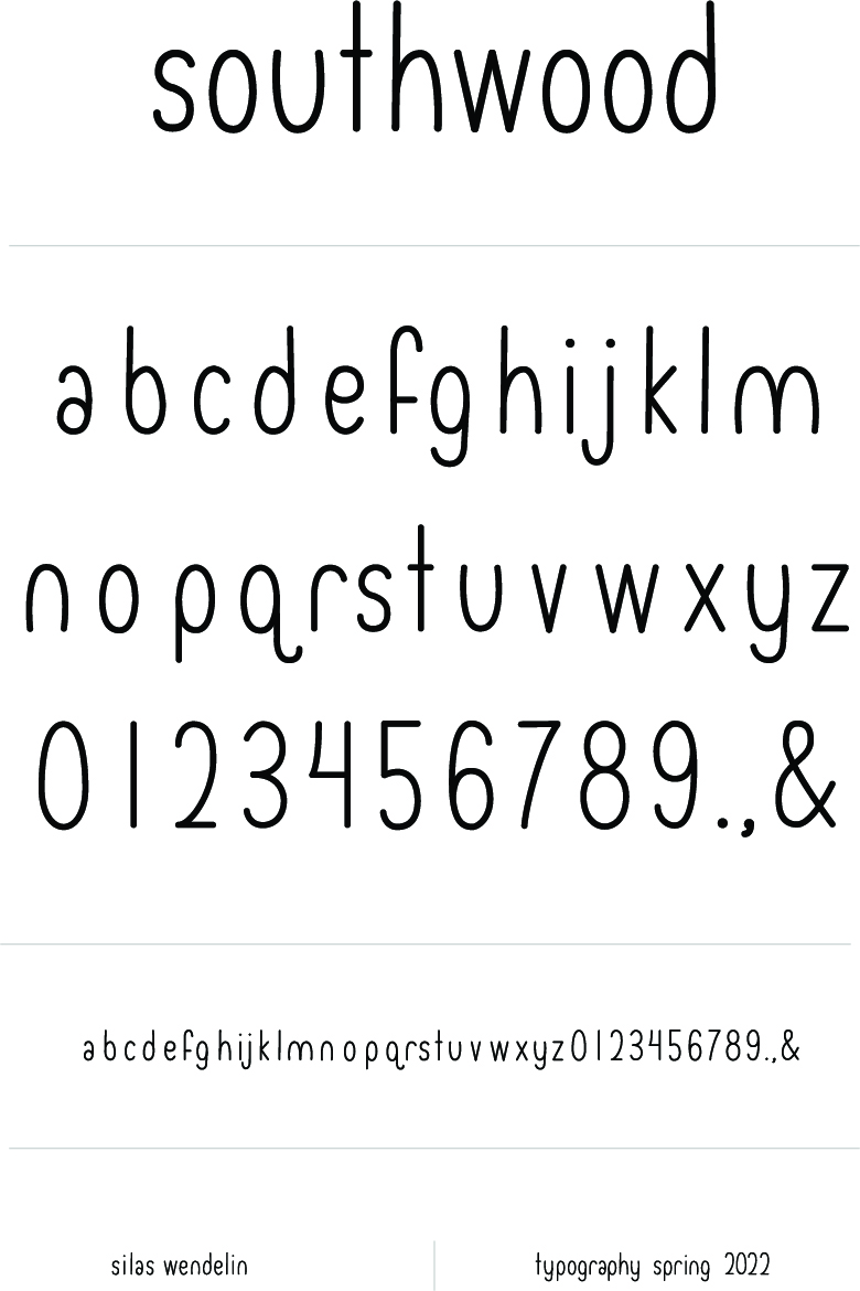 Typeface design - "Southwood" Use case example and type specimen for the typeface "Southwood", a typeface I designed as coursework for a Typography class.